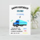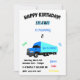 Invitation d'anniversaire "Eighteen Wheeler" avec le nom personnalisé et l'âge célébrant le plaisir, les jeux, gâteau et crème glacée.