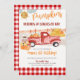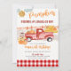 Invitation d'anniversaire pour le champ de citrouilles automnal avec le vieux camion rouge d'un garçon fermier.