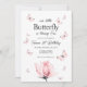 Invitation d'anniversaire premier papillon rose