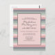 Carton d'invitation d'anniversaire avec des rayures roses pastel, violettes et vertes