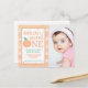 Cette invitation est douce comme une pêche ! Comprend des bandes aquarelles dans des tons de pêche avec la phrase "Annleigh est une douce". Parfait pour une fête d'anniversaire estivale sur le thème de la pêche. Pour personnaliser davantage, ajoutez la photo de votre enfant.