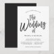 Une invitation de mariage unique avec une écriture de style script dansant suivie de vos détails uniques de jour de mariage en noir et blanc.