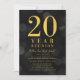 Invitation à la réunion de classe classique avec les mots "Réunion de 20 ans" en fausse feuille d'or contre un bokeh gris foncé illumine l'arrière - plan motif. L'invitation a un arrière - plan gris foncé derrière. Personnalisez cette invitation avec vos détails en remplaçant le texte de l'espace réservé. Pour plus d'options comme changer la police, la taille/la couleur du texte ou l'espacement entre les lettres, cliquez sur le bouton "Personnaliser". *Veuillez noter que le filigrane Zazzle qui apparaît dans l'aperçu du zoom n'apparaîtra PAS sur le produit imprimé final. © Bois de rose et agrumes