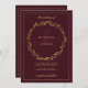 An elegant monogram initials stylish and simple dark burgundy with gold foliage wreath Wedding invitations.Elegant the bride and groom's initials. Perfect for the minimalist-themed wedding party.
