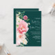 Invitation Dark Moody Emerald Blush Floral Script élégant