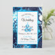Cartes d'invitation de mariage uniques abstraites modernes personnalisées avec peinture numérique bleue et blanche en marbre