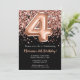 Invitation de 4e anniversaire Black Rose Gold Parties scintillant Elégant or noir et rose 4e anniversaire invitation pour une fille de 4 ans avec écriture de script moderne et des ballons de papier amusant.