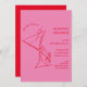 Une invitation de 50e anniversaire rouge et rose dessinée à la main présente mon illustration de cocktail à la main unique avec une police de script ludique pour votre célébration de cinquantième anniversaire stylisée. Avec ce design, vous pouvez personnaliser avec vos détails à la fois sur la conception de la carte avant et de la carte arrière.
