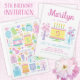 5ème anniversaire gâteau jaune et rose avec le numéro 5 sur le gâteau. Le numéro 5 est ajouté aux gâteaux et présente tout au long du design. Personnalisez le nom dans un script rose décontracté pour mettre en évidence la fille d'anniversaire.