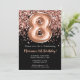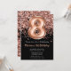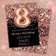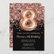 Invitation de 8e anniversaire Black Rose Gold Parties scintillant Elégant or noir et rose 8e anniversaire Invitation de fête pour une fille de 8 ans avec écriture de script moderne et des ballons de papier amusant.