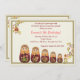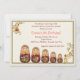 Une invitation charmante à la célébration d'anniversaire d'une petite fille avec cinq Babushka, poupées de nidification.