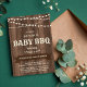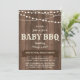 Un invitation baby shower barbecue avec un arrière - plan rustique à l'allure de bois et des lampes à cordes. Veuillez me contacter si vous souhaitez obtenir de l'aide pour mettre en forme le texte de cette invitation baby shower.