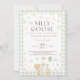 Invitation de Baby Shower Canard Vert. Gingham neutre en genre Oie Debout Invitation Drôle. Modèle de fête de printemps de sauge imprimable. G3