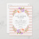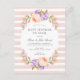 Que vous ne puissiez pas vous rassembler pour une fête en raison des directives de distanciation sociale coronavirus, ou que la famille et les amis de longue distance sont juste trop loin, ce magnifique Baby shower par invitation par courrier permettra à des proches de célébrer votre nouveau bébé de n'importe où. Ce joli design botanique présente un cadre aquarelle de pêche et de fleurs de lavande sur un arrière - plan rayé roux. Utilisez les outils de conception pour customiser le texte, modifier les polices et les couleurs ou ajouter vos propres photos pour créer une élégante invitation à baby shower à ressort fleuri.