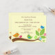 Avec un arrière - plan jaune pâle, l'avant et le dos de cette invitation de baby shower a 4 oiseaux contemporains se reposer sur une branche d'arbre avec 4 fleurs colorées. Conception idéale pour le baby shower, la douche nuptiale ou l'anniversaire ! Il y a d'abondance de texte personnalisable pour que vous personnalisiez cette invitation avec votre information de partie.