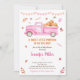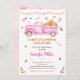 Cette invitation présente de mignonnes feuilles d'automne et un camion rose rempli de foin et de citrouilles.
