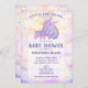 Adorable dragon de bébé violet et rose dormant paisiblement sur un nuage entouré d'étoiles sur cette mignonne invitation de baby shower personnalisable. Idéal pour un baby shower à thème dragon ou un baby shower à thème imaginaire pour une petite fille.