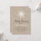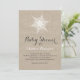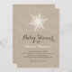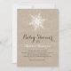 Écriture de ruban fantaisie et un flocon de neige fantaisie accentuent cette invitation rustique et baby shower sur un arrière - plan burlap illustré. Contactez-nous à l'adresse prettyfancyinvites@gmail.com, si vous avez besoin d'autres éléments de coordination ou d'aide pour personnaliser cette invitation. Faites défiler vers le bas pour voir l'estampille de coordination.