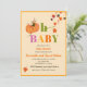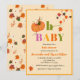 Citrouille d'automne Oh Baby Shower Invitations avec beau citrouille orangé blanc et chute feuillage d'automne et marguerites en jaune et orange. Détails originaux et aquarelle peints par moi ! Avec une typographie ludique et brillante. Célébrez les parents d'être avec cette invitation spéciale baby shower automne que vous pouvez facilement personnaliser.