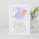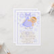 Une invitation mignonne avec un petit garçon dans une couverture bleue avec un grand sourire. Le arrière - plan encadré est agrémenté de fleurs bleues sur une base blanche. Idéal pour une douche de bébé.