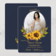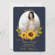 Beau, d'or, des tournesols et une fenêtre ovale de photo créez cette invitation renversante. Approprié à la plupart des célébrations heureuses. (<a href='https://www.freepik.com/free-photo/couple-of-handsome-husband-and-pretty-pragnant-woman-posing-at-studio_2877595.htm'>Conçu par Bristekjegor</a>). <br/><br/>Il est facile customiser la carte avec vos mots, police, couleur de police et choix de six types de papier<br/><br/>Pas exactement que recherchez-vous ? Tous nos produits peuvent être conçus en fonction du client pour répondre à vos besoins à aucun supplément<br/><br/>Contactez-simplement nous chez askpixieprints@aol.com<br/><br/>Produits coordonnés disponibles :