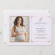 Une invitation sophistiquée de photo pour le baby shower d'une maman spéciale. L'arrière - plan doux de lavande comporte une fenêtre de photo et un cadre élégant d'or pour votre personnalisation, embellis avec un hochet de lavande. Voulez épargner l'argent ? Imprimez cette invitation sur le papier de coin de base et carré.