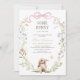 Célébrez la future maman avec cette invitation fantasque baby shower de printemps avec une aquarelle illustration d'un mignon lapin avec une couronne fleur sauvage aquarelle avec de minuscules fleurs sauvages pastel et un arc rose.