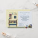 Cette invitation de baby shower de zone de construction inclut une chambre à coucher de bébé remplie de lit de bébé, de camions, de casque antichoc, d'étoiles et d'outils. L'avant et le dos de cette invitation peuvent être utilisés pour des détails de douche aussi.