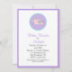 Baby shower blanc et violet, avec un cercle de lavande et d'aqua en haut, avec un éléphant de style carrousel rose sucré. Un violet avec un motif à pois blanc, couvre le dos. Personnalisez tous les champs de texte de votre événement baby shower.