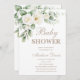 Ce Modèle d'Invitation de Baby shower Floral Blanc présente un design de fleur minimal avec des accents de verdure douce. L'invitation moderne et design est parfait pour un baby shower ou un bébé saupoudré d'un thème simple et élégant.