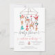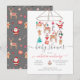 Invitations modernes et mignonnes de Noël à la douche bébé. Doté d'un sapin de Noël, d'un bonhomme de neige, du Père Noël, d'un manchot, de sucres de canne, de rennes, de pain d'épice, de cadeaux et d'ornements, le tout accroché sur un mobile. Des couleurs vives et modernes pour un garçon ou une fille. Verdure Aqua, rouge, marron rose et blanc. Tout libellé peut être modifié
