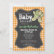 Idéal pour les Baby showers à thème Halloween en octobre. Possède un motif en vichy orange mignon et un arrière - plan pois gris charbon foncé. Un design neutre avec une maman de dessin animé. Les images utilisées sur cet élément sont sous licence et © Graphics Factory.com.