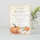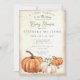 Rejoignez-nous alors que nous nous réunissons pour célébrer la plus belle petite bénédiction en chemin ! Cette invitation à thème rustique présente de douillettes tambours d'automne, des tonalités terreuses douces et d'adorables accents citrouilles, parfaits pour accueillir un bébé d'automne. Qu'il s'agisse de balles de foin et de bocaux de mason ou de citrouilles de grains de bois et d'aquarelle, ce design charmant donne le ton d'une célébration terre-à-terre pleine de passion, de rire et d'un petit air de pays.