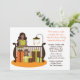 Une mère afro-américaine pour être et un Baby shower de bébé Invitation pour un bébé garçon. Cette invitation au baby shower vert et orange unisexe présente une mère enceinte à être et un bébé lit avec des cadeaux pois