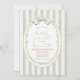 Caractérisé par des rayures de sauge aquarelle, un cadre ovale feuillu et un nœud ruban délicat, ce design est calme, minimaliste et merveilleusement neutre.