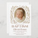 Célébrez le baptême de votre petit avec cette élégante invitation de baptême de style boho avec une palette de couleurs neutres et douces, une adorable photo de bébé Olivia Grace et des accents délicats de couronne florale. Un choix parfait pour une célébration de baptême chic et moderne.