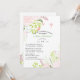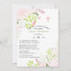 De délicates fleurs sauvages roses et vertes ornent les coins de l'invitation. Embellie d'une croix rose et blanche.