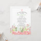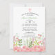 De délicates fleurs sauvages roses et vertes ornent le bas de l'invitation. Embellie d'une croix rose et blanche.
