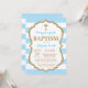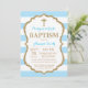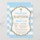 Invitation de baptême de parties scintillantes de bleu et d'or. Baptême de garçon. Première communion. Baptême. Dévouement d'enfant. Rayures bleues et blanches. Pour davantage de personnalisation, cliquez sur svp la "personnaliser il" bouton et utilisez notre outil de conception pour modifier ce modèle.