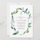 VG Invites Invitation de baptême et d'anniversaire comporte des lapins et de la verdure charmants à l'aquarelle qui encadrent les détails de votre événement de bénédiction de bébé. Un fond taché d'eau orne le dos de votre invitation. Un choix moderne et organique pour le baptême de vos jumeaux bautizo ou bautismo. Conçu par Victoria. Pour en voir plus, visitez www.zazzle.com/vginvites