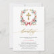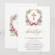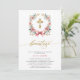 Invitation de baptême en rose et doré. Invitation moderne et élégante de baptême espagnol en or et rose. Ce design moderne et élégant présente une belle couronne florale dorée et rose ornée d'un délicat nœud et d'une croix dorée à l'intérieur. Le mot "bautizo" est écrit de manière élégante en lettres manuscrites dorées, ajoutant une touche de sophistication. Les détails de la célébration sont mis en évidence dans une écriture majuscule tendance sur un fond blanc croquant. Parfaite pour annoncer le baptême de votre enfant avec style et grâce, cette invitation combine de manière élégante des éléments contemporains avec un charme intemporel.