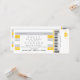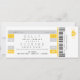 Customisez ce billet d'amusement et annoncez votre date de mariage d'une manière audacieuse et unique ! Tons de jaune de soleil et gris-clair avec des accents de noir. Un mélange de polices numériques pour une véritable sensation de billet de concert. Imprimez le voyage, le logement et/ou les détails supplémentaires de RSVP sur le dos.
