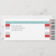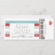 Customisez ce billet d'amusement et annoncez votre date de mariage d'une manière audacieuse et unique ! Tons de bleu rouge et léger lumineux d'Aqua avec des accents de noir. Un mélange de polices numériques pour une véritable sensation de billet de concert. Imprimez le voyage, le logement et/ou les détails supplémentaires de RSVP sur le dos.