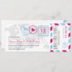 Une carte d'embarquement a inspiré l'invitation de billet avec des détails de timbre de passeport d'amusement et des rayures de par avion. Montré dans les nuances du rose lumineux, bleu en pastel, gris-foncé et gris-clair. L'arrière inclut l'espace supplémentaire pour n'importe quelle information d'hôtel, de voyage ou de site Web.