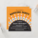 Invitation à la fête d'anniversaire avec une boule de bowling et une rangée de quilles. Texte invitation personnalisable. Pour obtenir de l'aide ou des demandes personnalisées, veuillez utiliser le lien de contact ci-dessus.