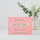 L'invitation de Bridesmaid Invitation Pink and Green Floral présente un joli design décoratif fleuri avec "Serez-vous ma servante d'accueil ?" et le nom de Bridesmaid écrit en vert. Achetez le vôtre aujourd'hui. Clipart florale : oeuvre créée par : AMBillustrations http://www.etsy.com/shop/AMBillustrations/