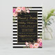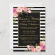 Aquarelle rose Blush Gold et Black & White rayures Fête des mariées florale Brunch & Bubbly Invitation Card