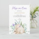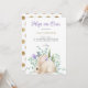 Belle invitation de Pâques avec photo de lapin blanc et fleurs d'aquarelle. L'invitation est facile à customiser en choisissant n'importe quelle police que vous aimez, couleur et taille de police. L'arrière - plan de l'invitation est présenté en points d'or.