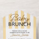 Célébrez avec la future maman et cette jolie invitation au baby shower rayé jaune amusant. Dispose d'un thème brunch avec rayures jaunes et belle typographie noir et marron. En plus, une section de déchirure pour les livres pour bébé et un code QR pour le registre. Donne des ondes estivales et printanières.