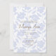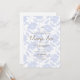 Cette invitation de Première Sainte Communion présente un fond floral doux en bleu pastel avec une typographie élégante en or et sérif. Le design est moderne tout en étant intemporel, combinant un motif délicat avec un script sophistiqué pour un look raffiné et gracieux.